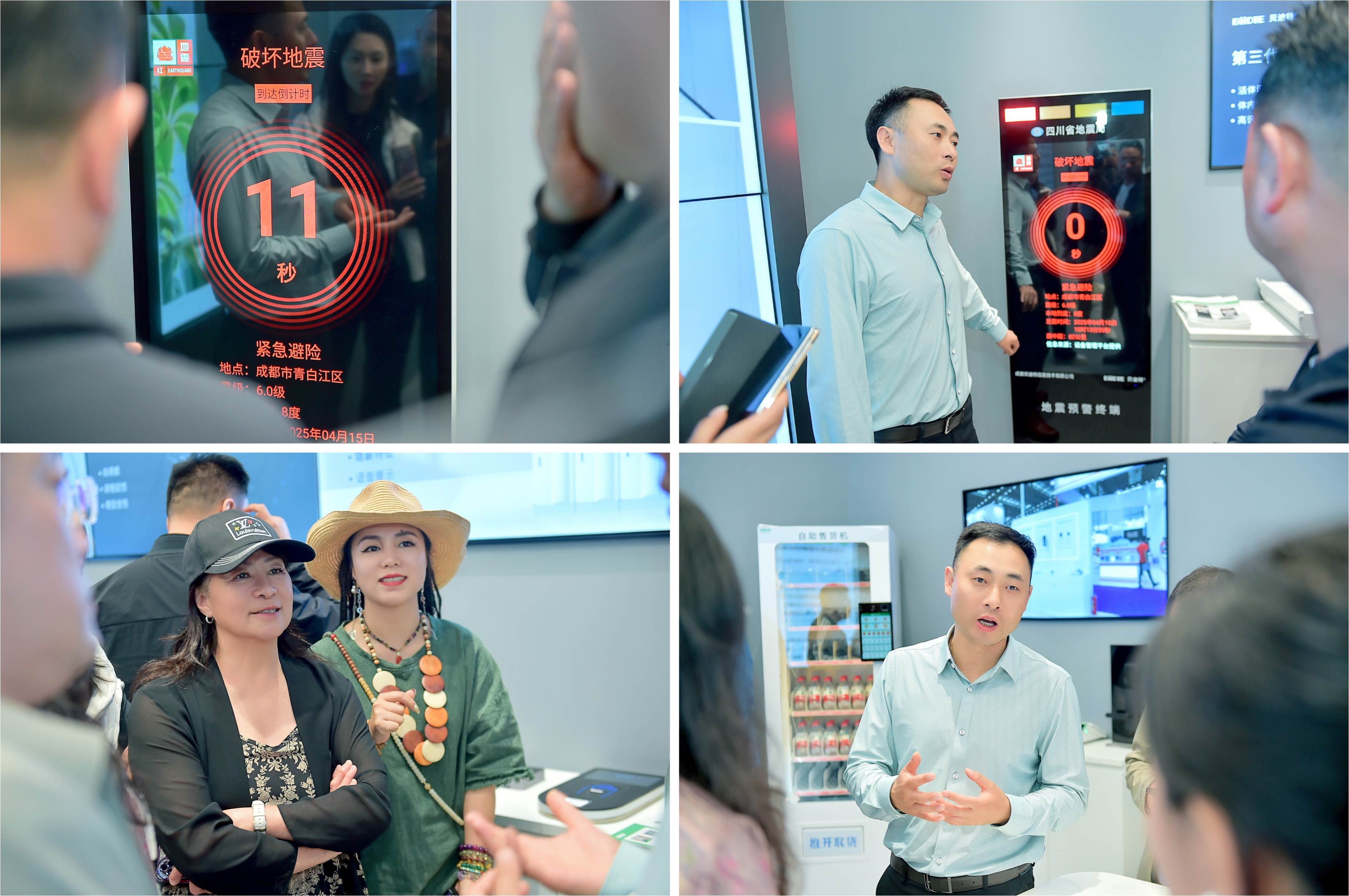 随后,在地震预警系统展示区,现场模拟了地震发生时的情景,毛总讲解演示了地震预警系统的实时监测和快速响应。校友们直观地感受到在地震波到达前发出的地震预警,了解了预警系统的响应机制和应急响应争取宝贵时间的原理。