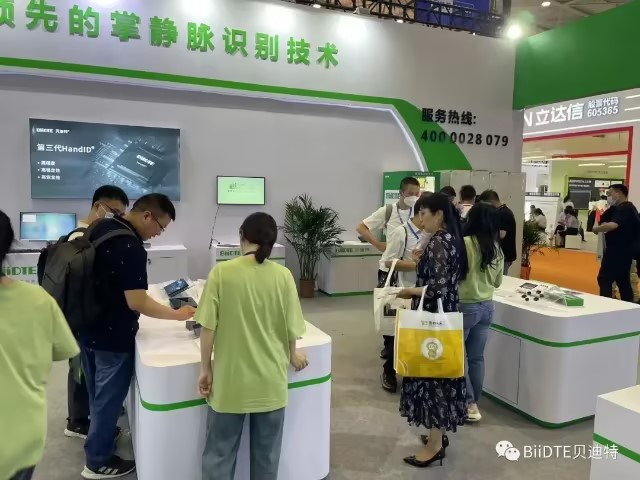 贝迪特携多款掌静脉设备亮相,新颖的身份认证方式,快速的支付方法,让不少人驻足围观、体验。