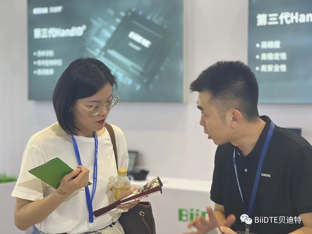 为了让大家更直观的了解掌静脉校园一“掌”通的具体解决方案,贝迪特负责人为现场观众演示了如何使用手掌静脉在校园内实现校门通行、宿舍管理、考勤签到、储物管理、食堂消费等场景,现场观众纷纷称赞贝迪特掌静脉产品识别速度快、好用方便。