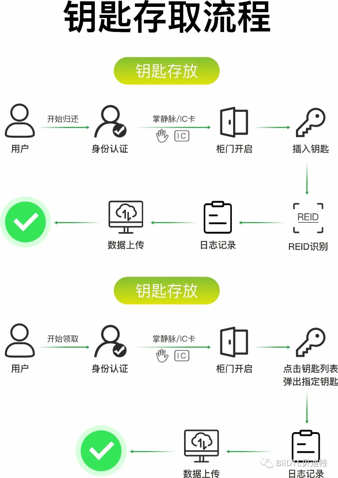 钥匙取出、归还状态实时显示,钥匙路径自动上传至后台管理。
